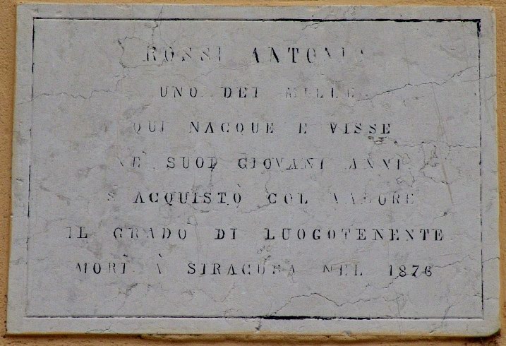 ROSSI ANTONIO UNO DEI MILLE QUI NACQUE E VISSE NEI SUOI GIOVANI ANNI. ACQUISTÒ COL VALORE