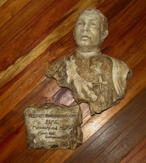 Papua Nuova Guinea (Oceania - Melanesia) - Estate 2006PAG 05Immagini della baia di Guasopa sulla mitica isola di WOODLARK Là dove nel settembre del 1855 furono martirizzati il Beato p. Giovanni Mazzucconi di Lecco con tutti i 14 membri dell'equipaggio della nave "La Gazelle" Le foto rappresentano il viaggio di Claudio Gobbetti su un piccolo aereo CESNA da Port Moresbay a Guasopa di Woodlark il martedì 8 agosto 2006, la bianca spiaggia nella baia di Guasopa, sullo sfondo si vede la poco distante piccola isola di Rew dove fu incagliata la nave con il p. Mazzucconi, lo stendardo dipinto dal giovane studente Tisi Patrick dell'ist. St. D'Arte "A. Dal Prato" di Guidizzolo MN; il bassorilievo dedicato al Beato Mazzucconi, opera dell'artista Paulangel di Suzzara MN; la cappella dei missionari P.I.M.E. ad Alotau dedicata al Beato Mazzucconi e Claudio Gobbetti con Fidel, il primo giovane studente di teologia PIME residente a Woodlalrk. Foto di Claudio Gobbetti |